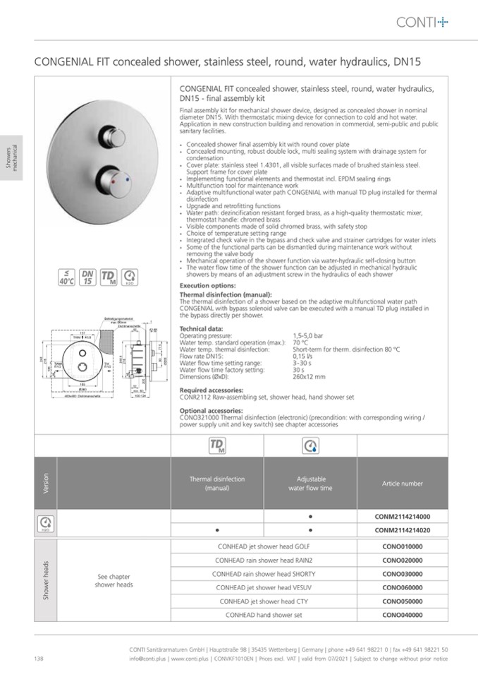CONTI Sanitärarmaturen GmbH | Hauptstraße 98 | 35435 Wettenberg | Germany | phone +49 641 98221 0 | fax +49 641 98221 50