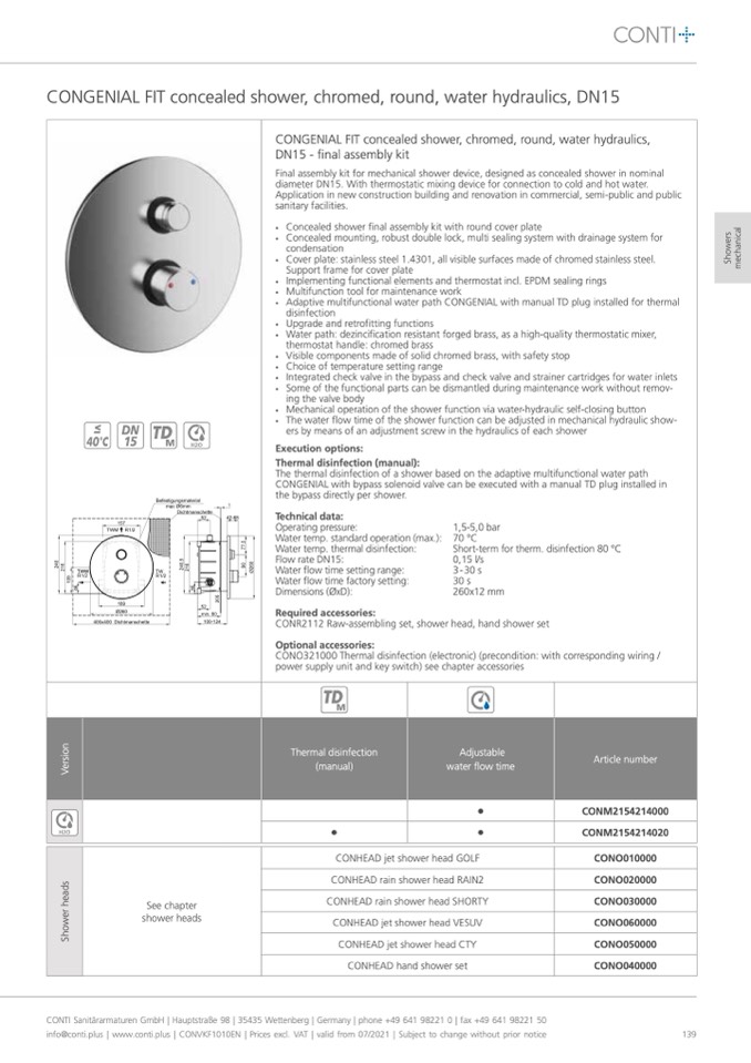 CONTI Sanitärarmaturen GmbH | Hauptstraße 98 | 35435 Wettenberg | Germany | phone +49 641 98221 0 | fax +49 641 98221 50