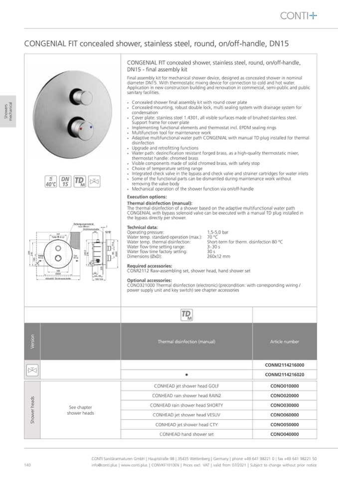 CONTI Sanitärarmaturen GmbH | Hauptstraße 98 | 35435 Wettenberg | Germany | phone +49 641 98221 0 | fax +49 641 98221 50