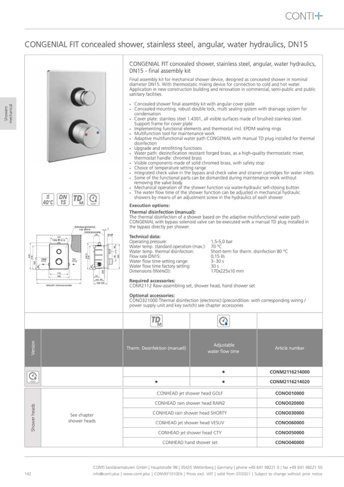 CONTI Sanitärarmaturen GmbH | Hauptstraße 98 | 35435 Wettenberg | Germany | phone +49 641 98221 0 | fax +49 641 98221 50