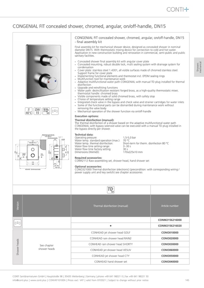 CONTI Sanitärarmaturen GmbH | Hauptstraße 98 | 35435 Wettenberg | Germany | phone +49 641 98221 0 | fax +49 641 98221 50