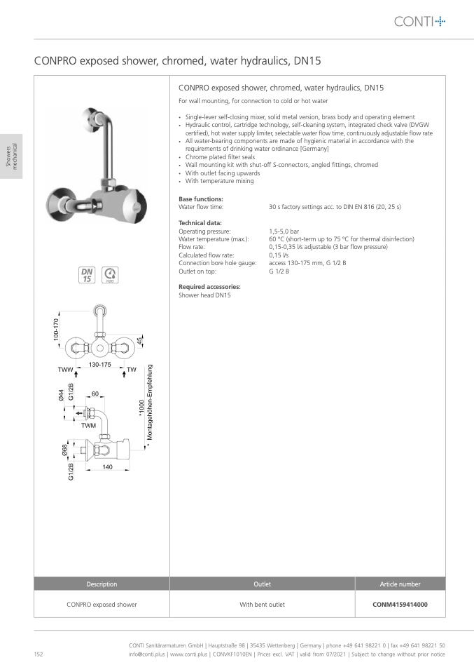 CONTI Sanitärarmaturen GmbH | Hauptstraße 98 | 35435 Wettenberg | Germany | phone +49 641 98221 0 | fax +49 641 98221 50