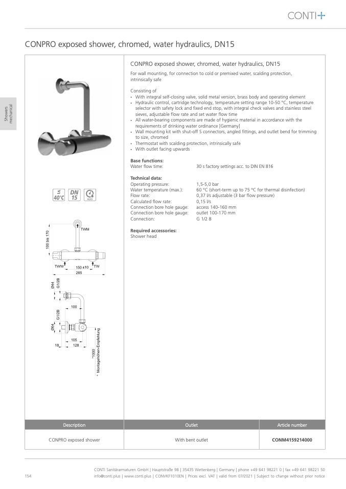 CONTI Sanitärarmaturen GmbH | Hauptstraße 98 | 35435 Wettenberg | Germany | phone +49 641 98221 0 | fax +49 641 98221 50