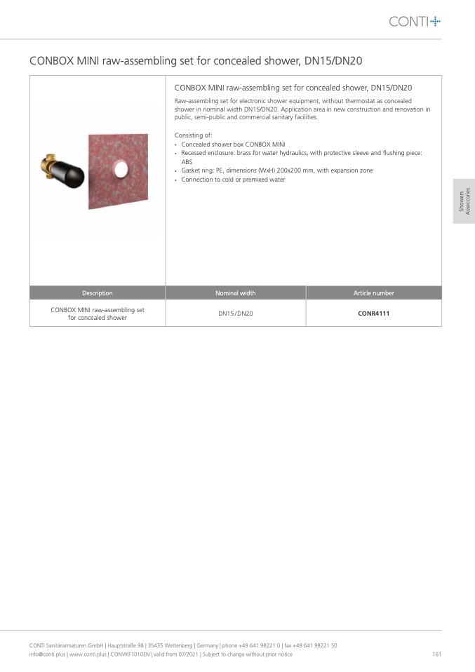 CONTI Sanitärarmaturen GmbH | Hauptstraße 98 | 35435 Wettenberg | Germany | phone +49 641 98221 0 | fax +49 641 98221 50