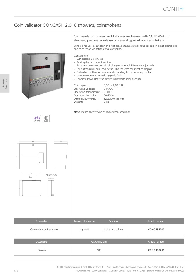 Coin validator for max. eight shower enclosures with CONCASH 2.0