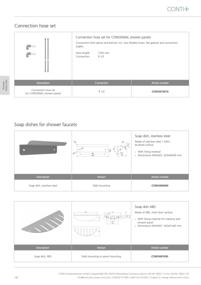 CONTI Sanitärarmaturen GmbH | Hauptstraße 98 | 35435 Wettenberg | Germany | phone +49 641 98221 0 | fax +49 641 98221 50