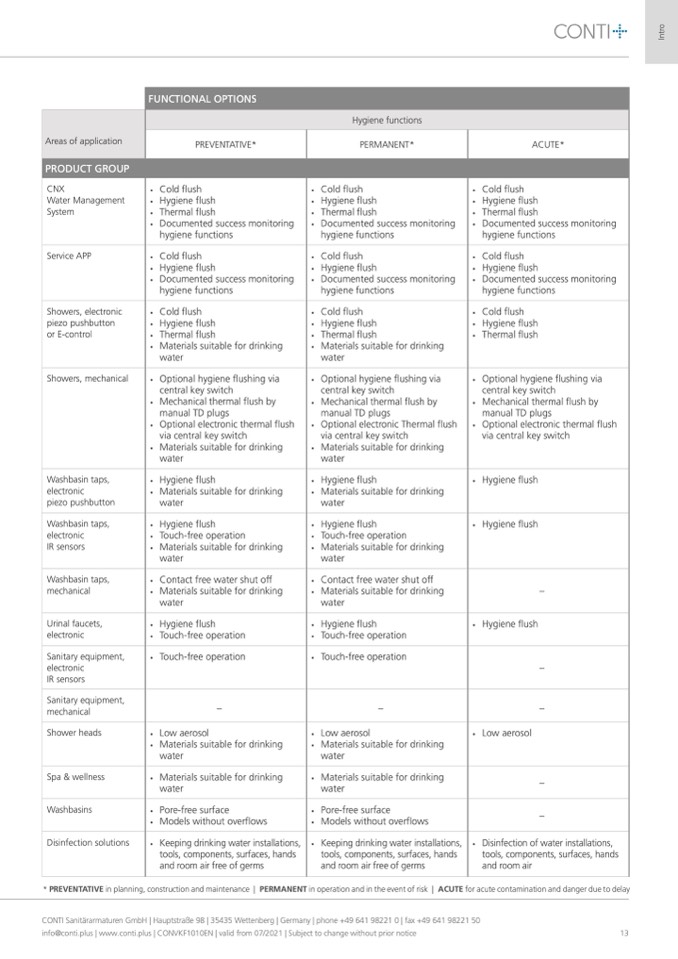 CONTI Sanitärarmaturen GmbH | Hauptstraße 98 | 35435 Wettenberg | Germany | phone +49 641 98221 0 | fax +49 641 98221 50