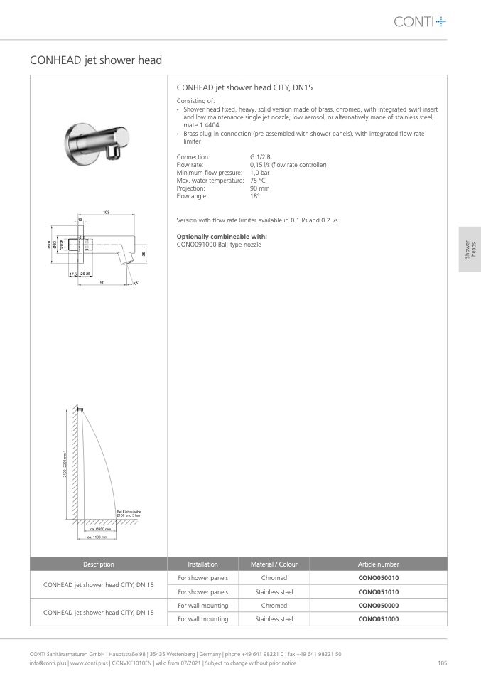CONTI Sanitärarmaturen GmbH | Hauptstraße 98 | 35435 Wettenberg | Germany | phone +49 641 98221 0 | fax +49 641 98221 50
