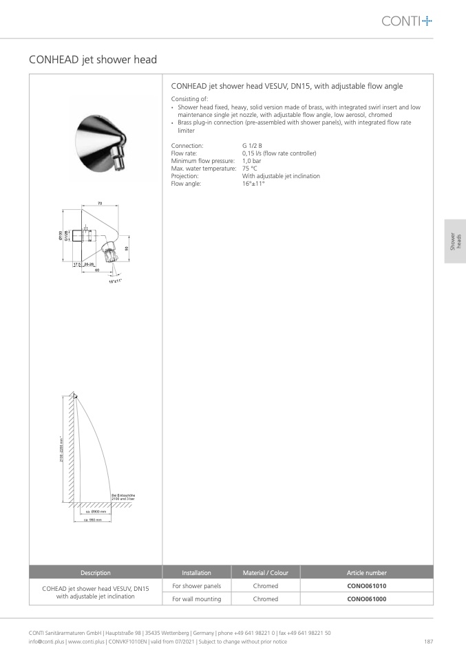 CONTI Sanitärarmaturen GmbH | Hauptstraße 98 | 35435 Wettenberg | Germany | phone +49 641 98221 0 | fax +49 641 98221 50