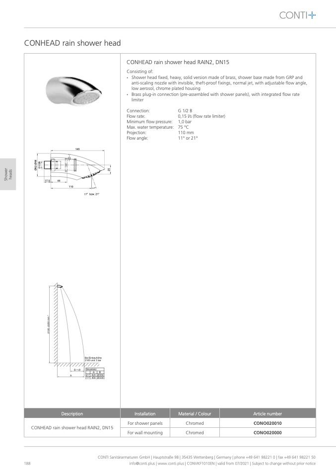 CONTI Sanitärarmaturen GmbH | Hauptstraße 98 | 35435 Wettenberg | Germany | phone +49 641 98221 0 | fax +49 641 98221 50