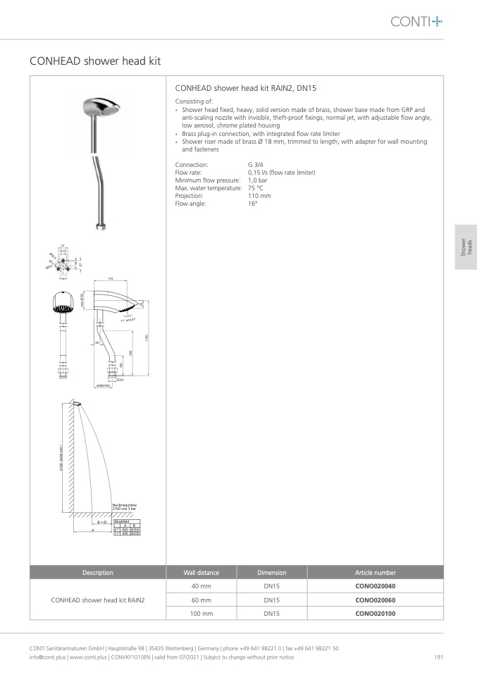 CONTI Sanitärarmaturen GmbH | Hauptstraße 98 | 35435 Wettenberg | Germany | phone +49 641 98221 0 | fax +49 641 98221 50