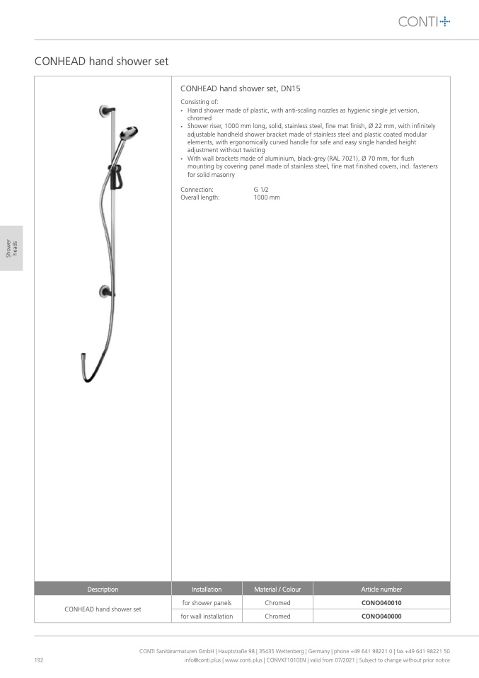 CONTI Sanitärarmaturen GmbH | Hauptstraße 98 | 35435 Wettenberg | Germany | phone +49 641 98221 0 | fax +49 641 98221 50