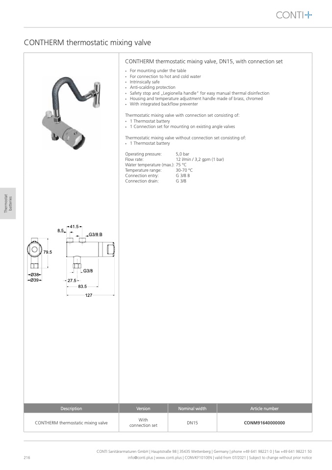 CONTI Sanitärarmaturen GmbH | Hauptstraße 98 | 35435 Wettenberg | Germany | phone +49 641 98221 0 | fax +49 641 98221 50