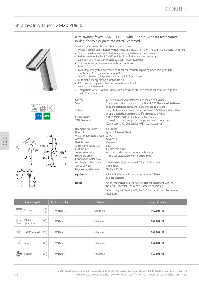 CONTI Sanitärarmaturen GmbH | Hauptstraße 98 | 35435 Wettenberg | Germany | phone +49 641 98221 0 | fax +49 641 98221 50
