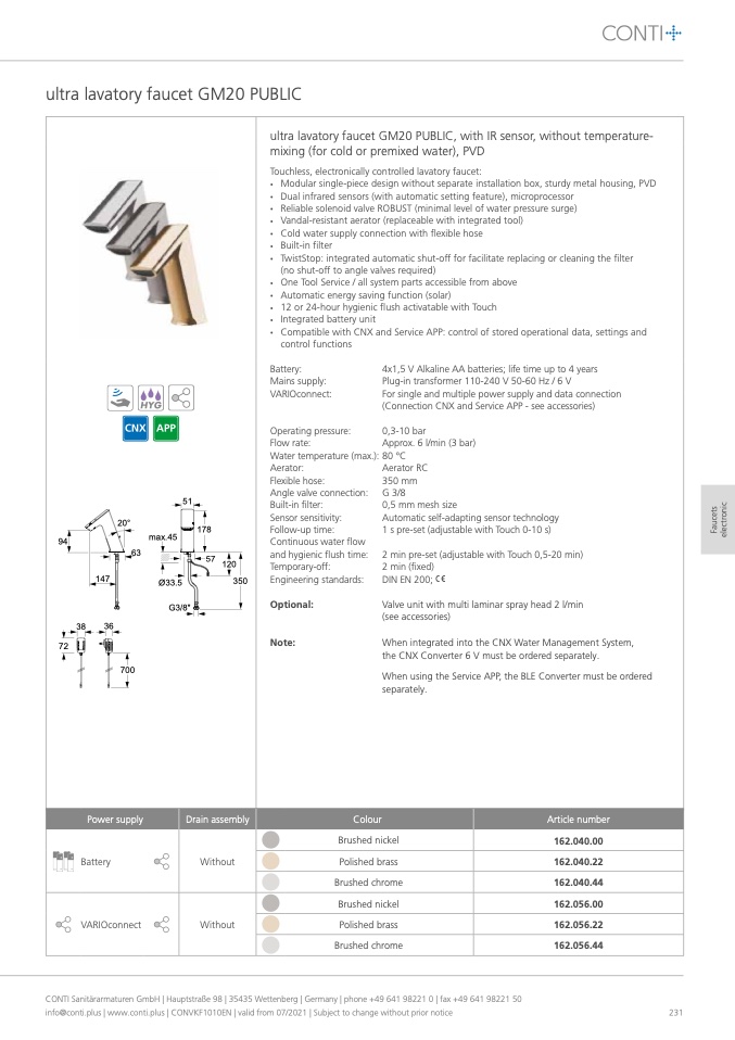 CONTI Sanitärarmaturen GmbH | Hauptstraße 98 | 35435 Wettenberg | Germany | phone +49 641 98221 0 | fax +49 641 98221 50