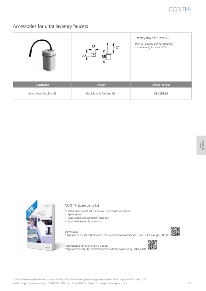 CONTI Sanitärarmaturen GmbH | Hauptstraße 98 | 35435 Wettenberg | Germany | phone +49 641 98221 0 | fax +49 641 98221 50