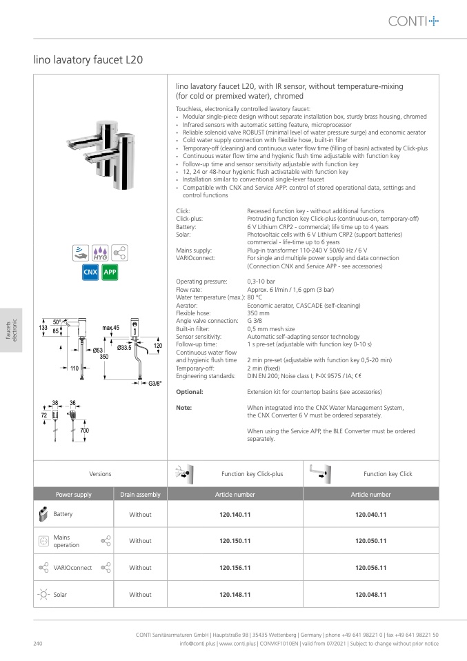 CONTI Sanitärarmaturen GmbH | Hauptstraße 98 | 35435 Wettenberg | Germany | phone +49 641 98221 0 | fax +49 641 98221 50