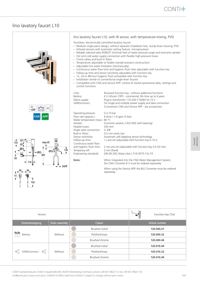 CONTI Sanitärarmaturen GmbH | Hauptstraße 98 | 35435 Wettenberg | Germany | phone +49 641 98221 0 | fax +49 641 98221 50