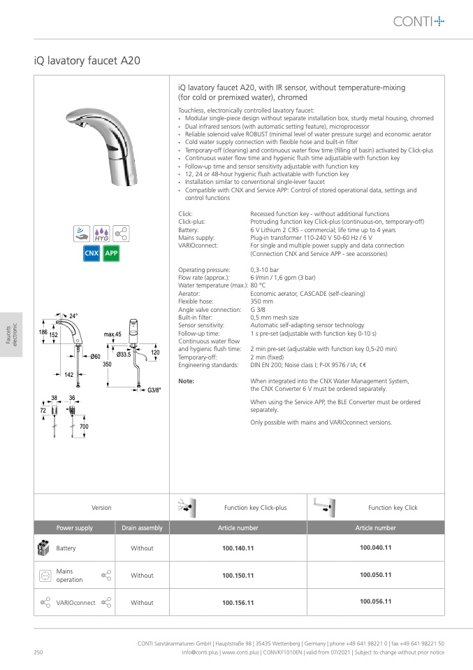 CONTI Sanitärarmaturen GmbH | Hauptstraße 98 | 35435 Wettenberg | Germany | phone +49 641 98221 0 | fax +49 641 98221 50