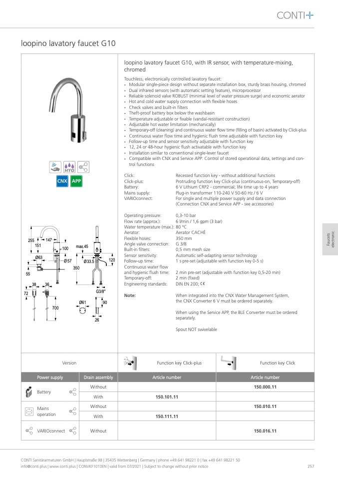 CONTI Sanitärarmaturen GmbH | Hauptstraße 98 | 35435 Wettenberg | Germany | phone +49 641 98221 0 | fax +49 641 98221 50