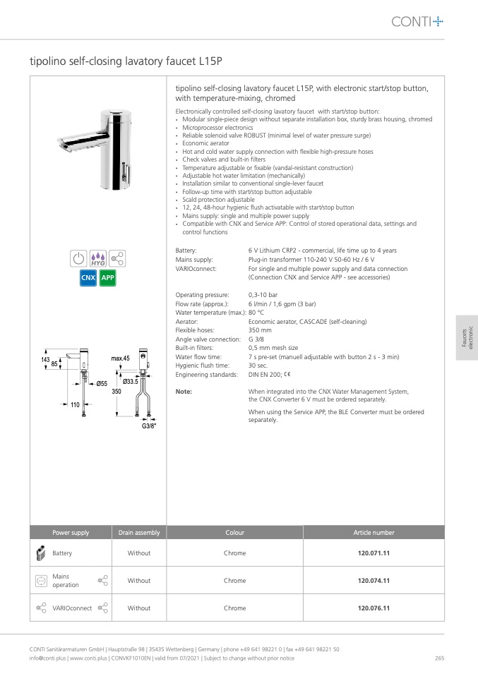 CONTI Sanitärarmaturen GmbH | Hauptstraße 98 | 35435 Wettenberg | Germany | phone +49 641 98221 0 | fax +49 641 98221 50