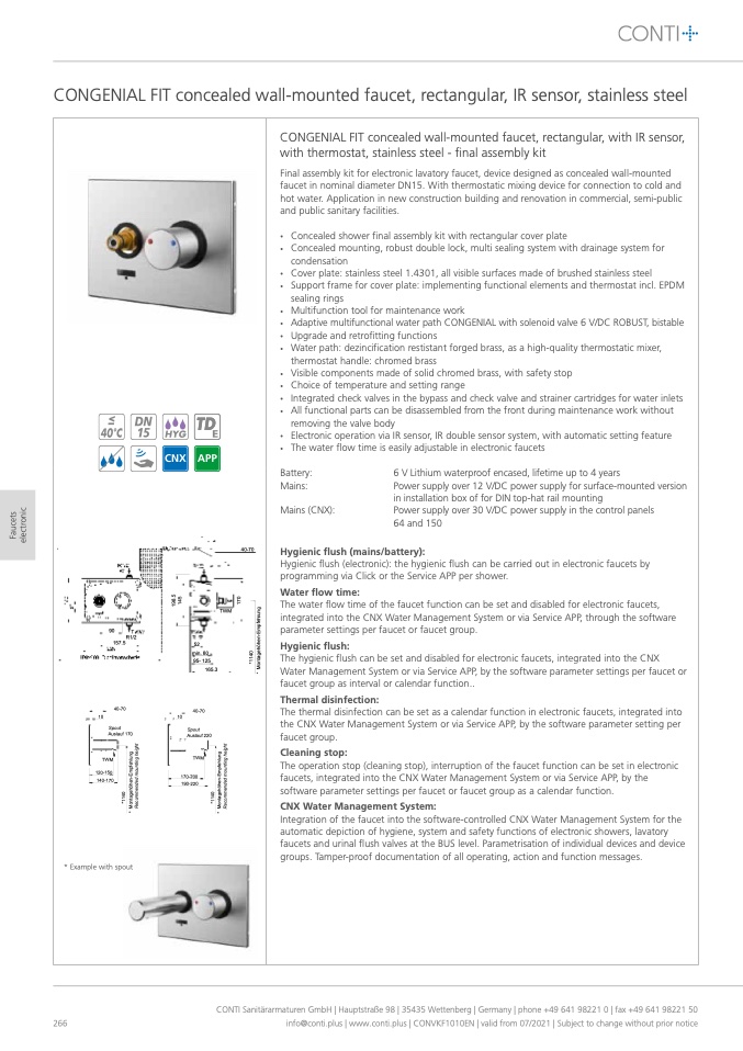 faucets, integrated into the CNX Water Management System or via Service APP, by the