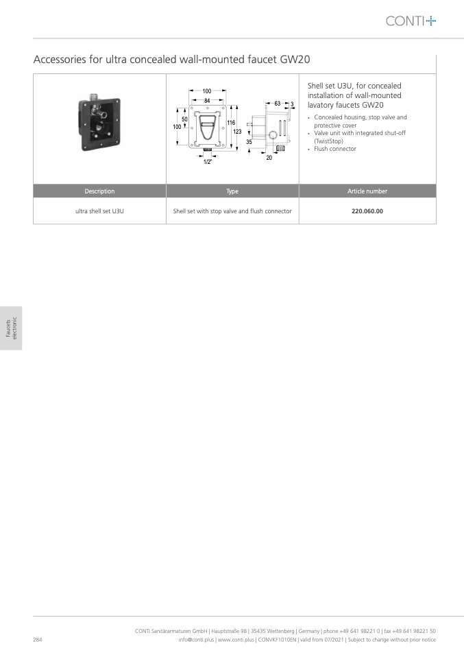 CONTI Sanitärarmaturen GmbH | Hauptstraße 98 | 35435 Wettenberg | Germany | phone +49 641 98221 0 | fax +49 641 98221 50