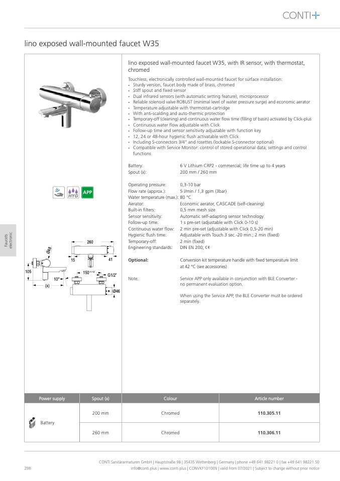 CONTI Sanitärarmaturen GmbH | Hauptstraße 98 | 35435 Wettenberg | Germany | phone +49 641 98221 0 | fax +49 641 98221 50