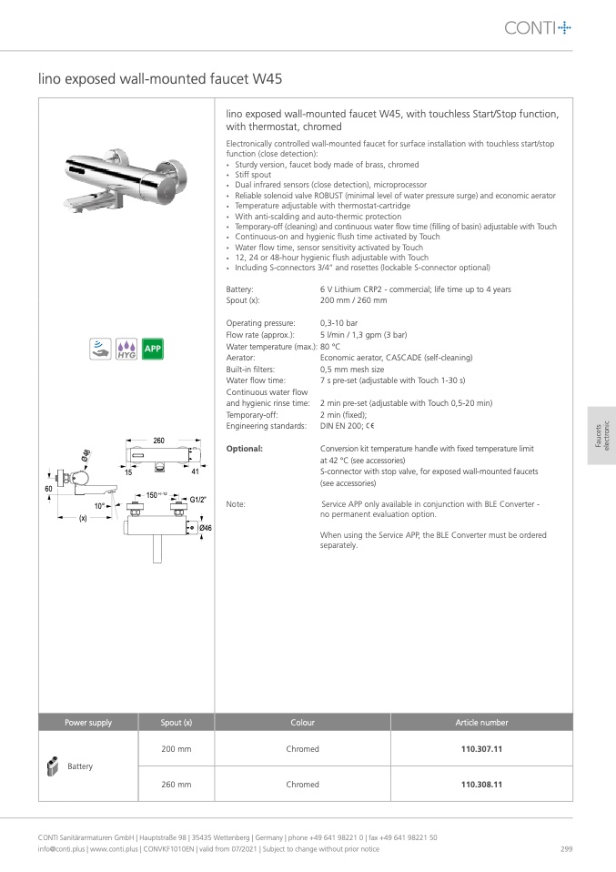 CONTI Sanitärarmaturen GmbH | Hauptstraße 98 | 35435 Wettenberg | Germany | phone +49 641 98221 0 | fax +49 641 98221 50