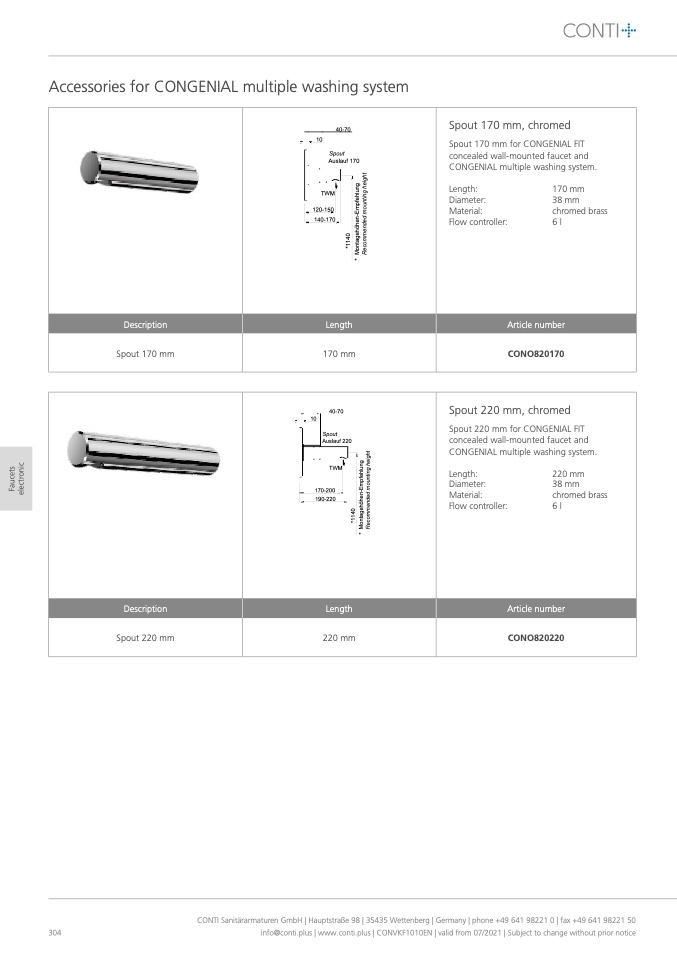 CONTI Sanitärarmaturen GmbH | Hauptstraße 98 | 35435 Wettenberg | Germany | phone +49 641 98221 0 | fax +49 641 98221 50