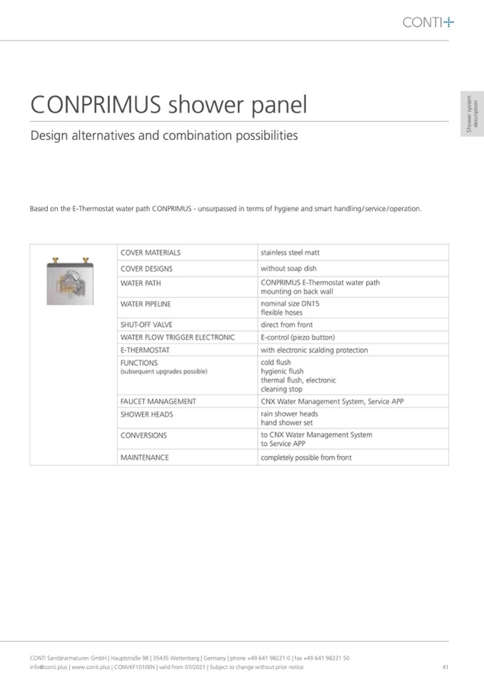 CONTI Sanitärarmaturen GmbH | Hauptstraße 98 | 35435 Wettenberg | Germany | phone +49 641 98221 0 | fax +49 641 98221 50