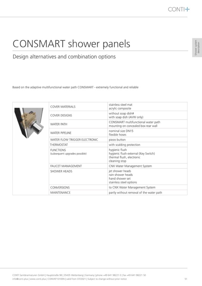 CONTI Sanitärarmaturen GmbH | Hauptstraße 98 | 35435 Wettenberg | Germany | phone +49 641 98221 0 | fax +49 641 98221 50