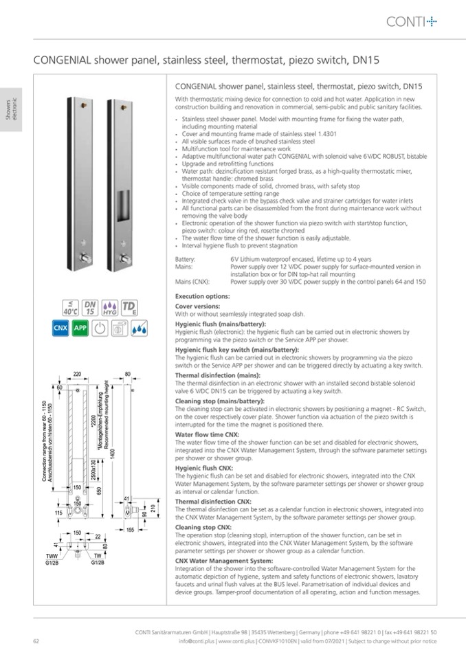 CONTI Sanitärarmaturen GmbH | Hauptstraße 98 | 35435 Wettenberg | Germany | phone +49 641 98221 0 | fax +49 641 98221 50