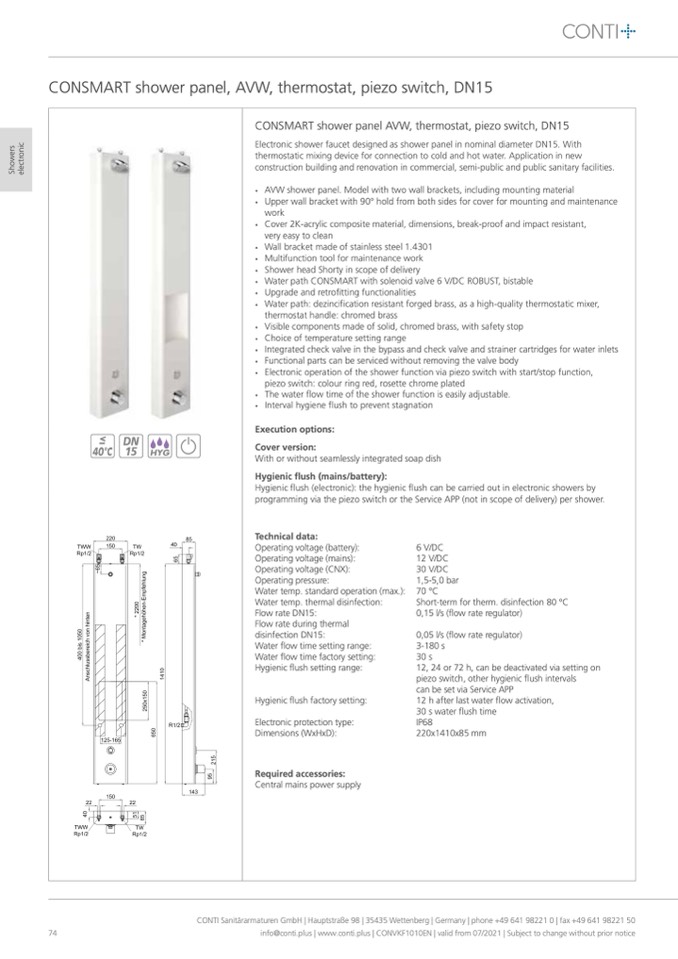 CONTI Sanitärarmaturen GmbH | Hauptstraße 98 | 35435 Wettenberg | Germany | phone +49 641 98221 0 | fax +49 641 98221 50