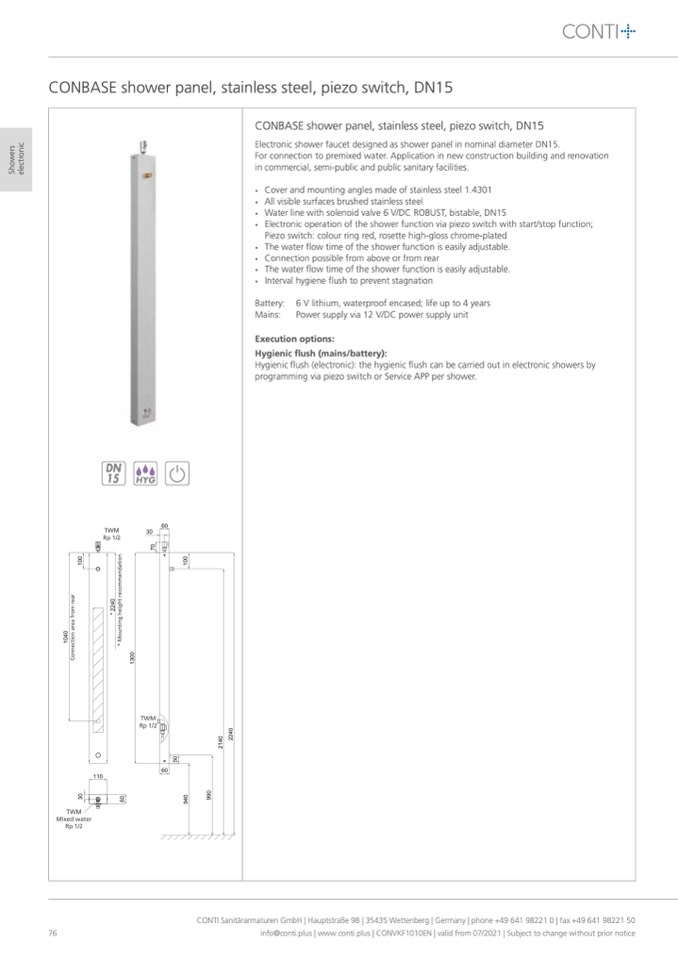 CONTI Sanitärarmaturen GmbH | Hauptstraße 98 | 35435 Wettenberg | Germany | phone +49 641 98221 0 | fax +49 641 98221 50