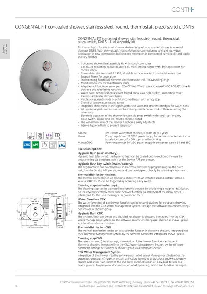 The hygienic flush can be set and disabled for electronic showers, integrated into the CNX