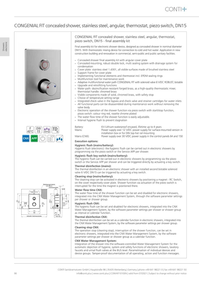 The hygienic flush can be set and disabled for electronic showers, integrated into the CNX