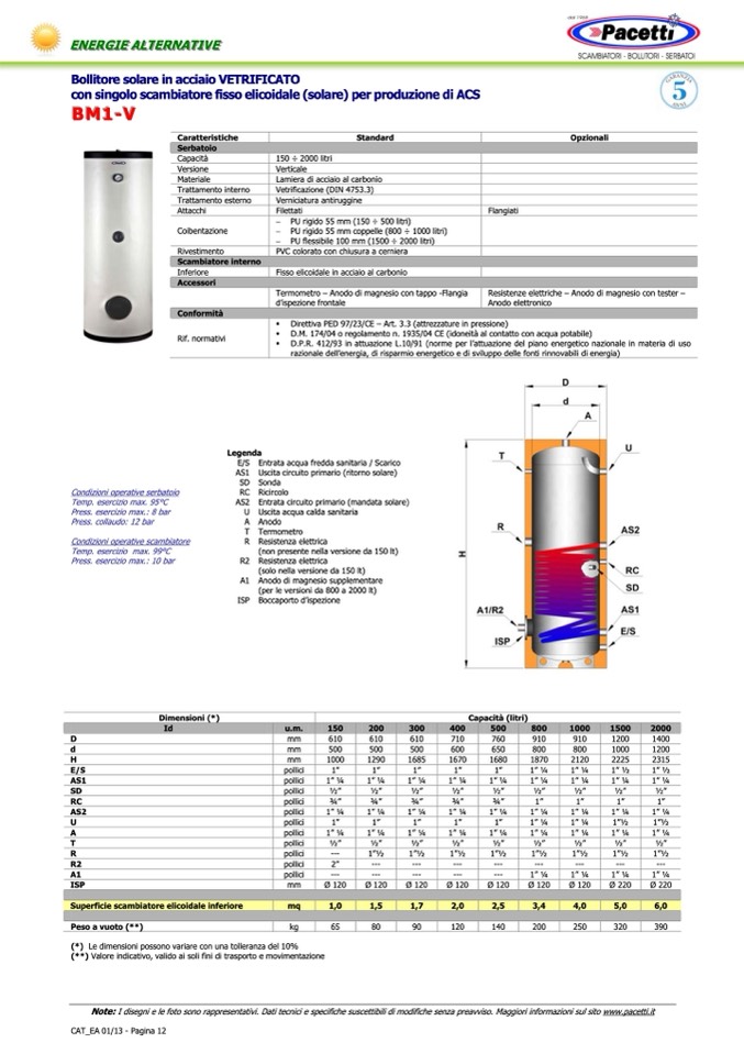 Note: I disegni e le foto sono rappresentativi. Dati tecnici e specifiche suscettibili di modifiche senza preavviso. Maggiori informazioni sul sito www.pacetti.it