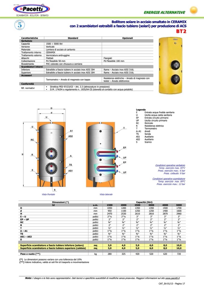 Note: I disegni e le foto sono rappresentativi. Dati tecnici e specifiche suscettibili di modifiche senza preavviso. Maggiori informazioni sul sito www.pacetti.it