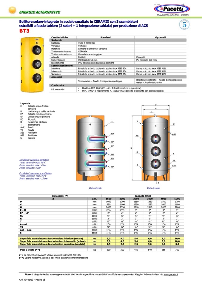Note: I disegni e le foto sono rappresentativi. Dati tecnici e specifiche suscettibili di modifiche senza preavviso. Maggiori informazioni sul sito www.pacetti.it