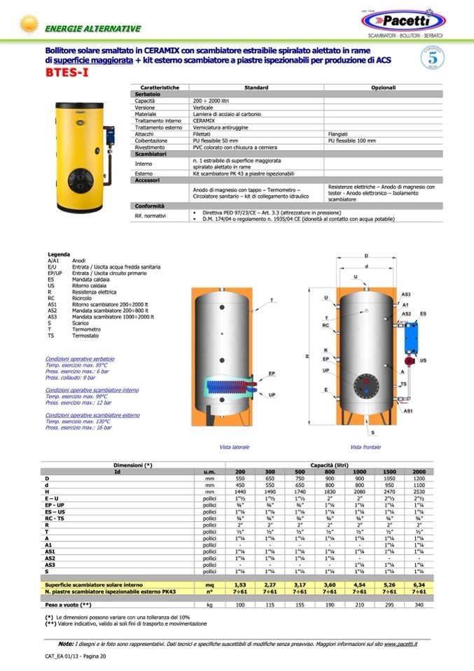 Note: I disegni e le foto sono rappresentativi. Dati tecnici e specifiche suscettibili di modifiche senza preavviso. Maggiori informazioni sul sito www.pacetti.it