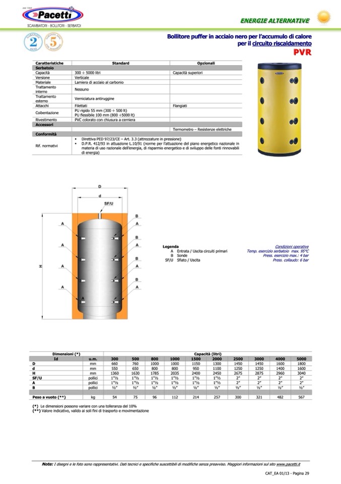 Note: I disegni e le foto sono rappresentativi. Dati tecnici e specifiche suscettibili di modifiche senza preavviso. Maggiori informazioni sul sito www.pacetti.it