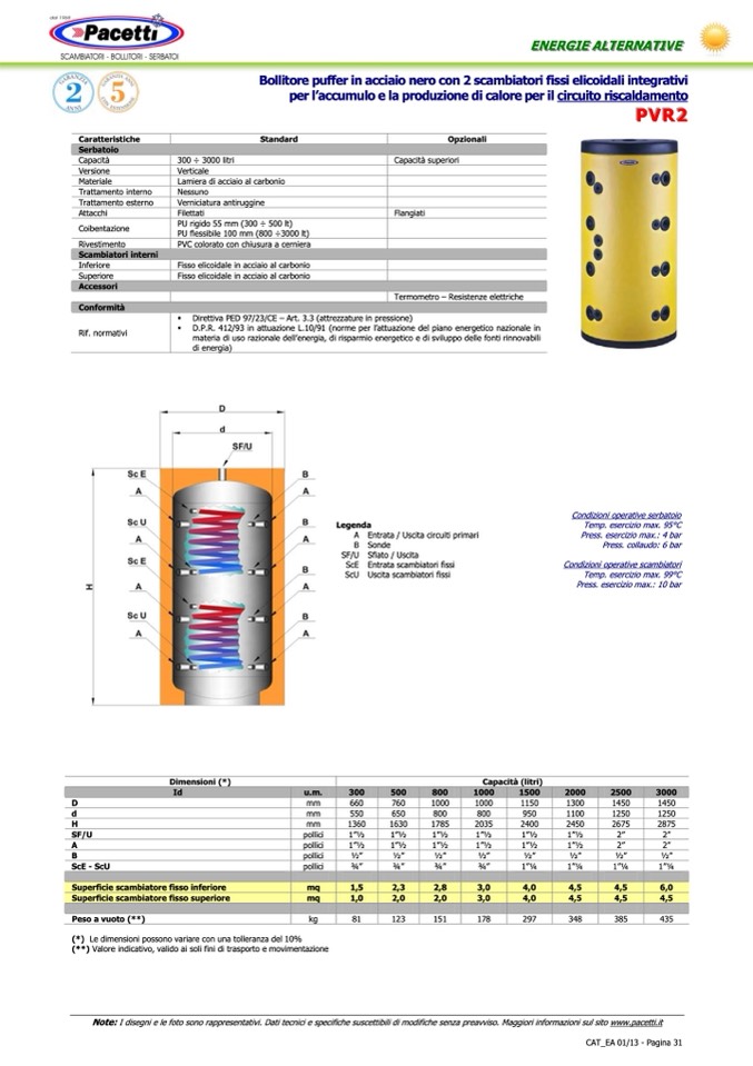 Note: I disegni e le foto sono rappresentativi. Dati tecnici e specifiche suscettibili di modifiche senza preavviso. Maggiori informazioni sul sito www.pacetti.it