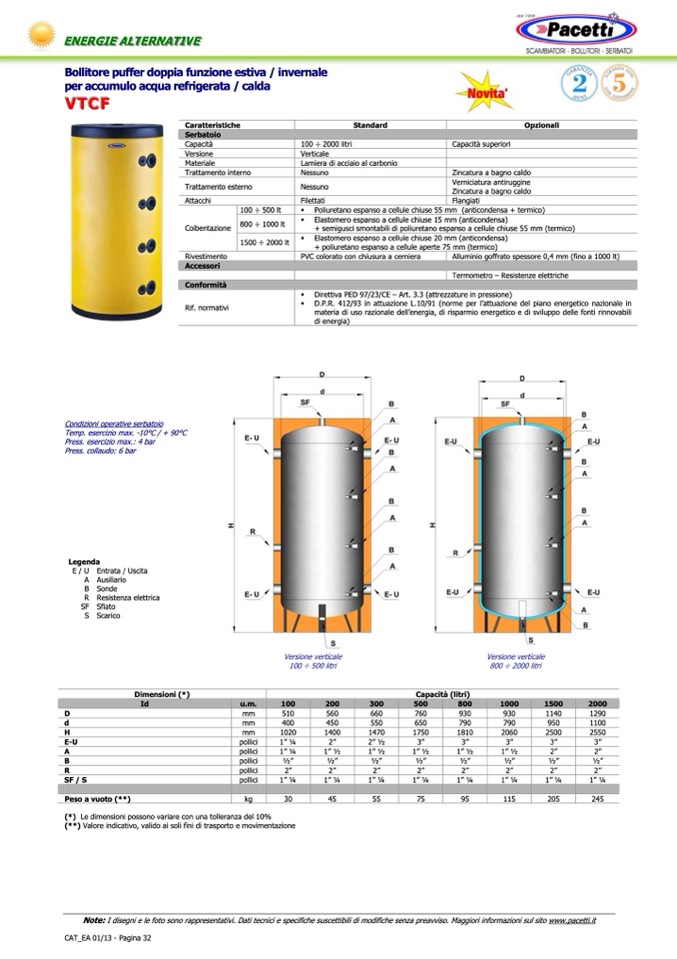 Note: I disegni e le foto sono rappresentativi. Dati tecnici e specifiche suscettibili di modifiche senza preavviso. Maggiori informazioni sul sito www.pacetti.it