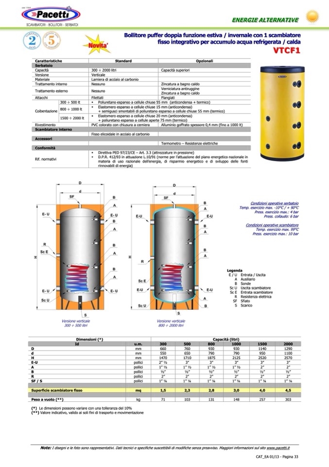 Note: I disegni e le foto sono rappresentativi. Dati tecnici e specifiche suscettibili di modifiche senza preavviso. Maggiori informazioni sul sito www.pacetti.it