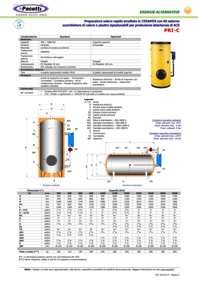 Note: I disegni e le foto sono rappresentativi. Dati tecnici e specifiche suscettibili di modifiche senza preavviso. Maggiori informazioni sul sito www.pacetti.it