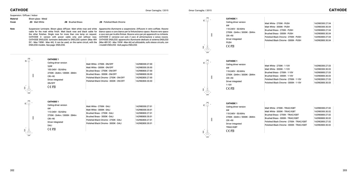 CATHODE 2: version with power cable only and without rose.