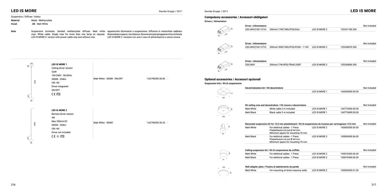 LED IS MORE 2: versione con solo il cavo di alimentazione e senza rosone.