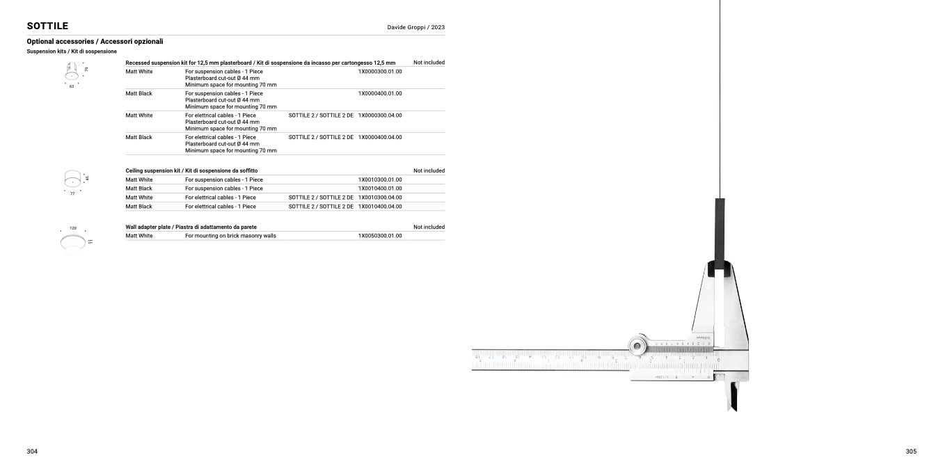 Recessed suspension kit for 12,5 mm plasterboard / Kit di sospensione da incasso per cartongesso 12,5 mm