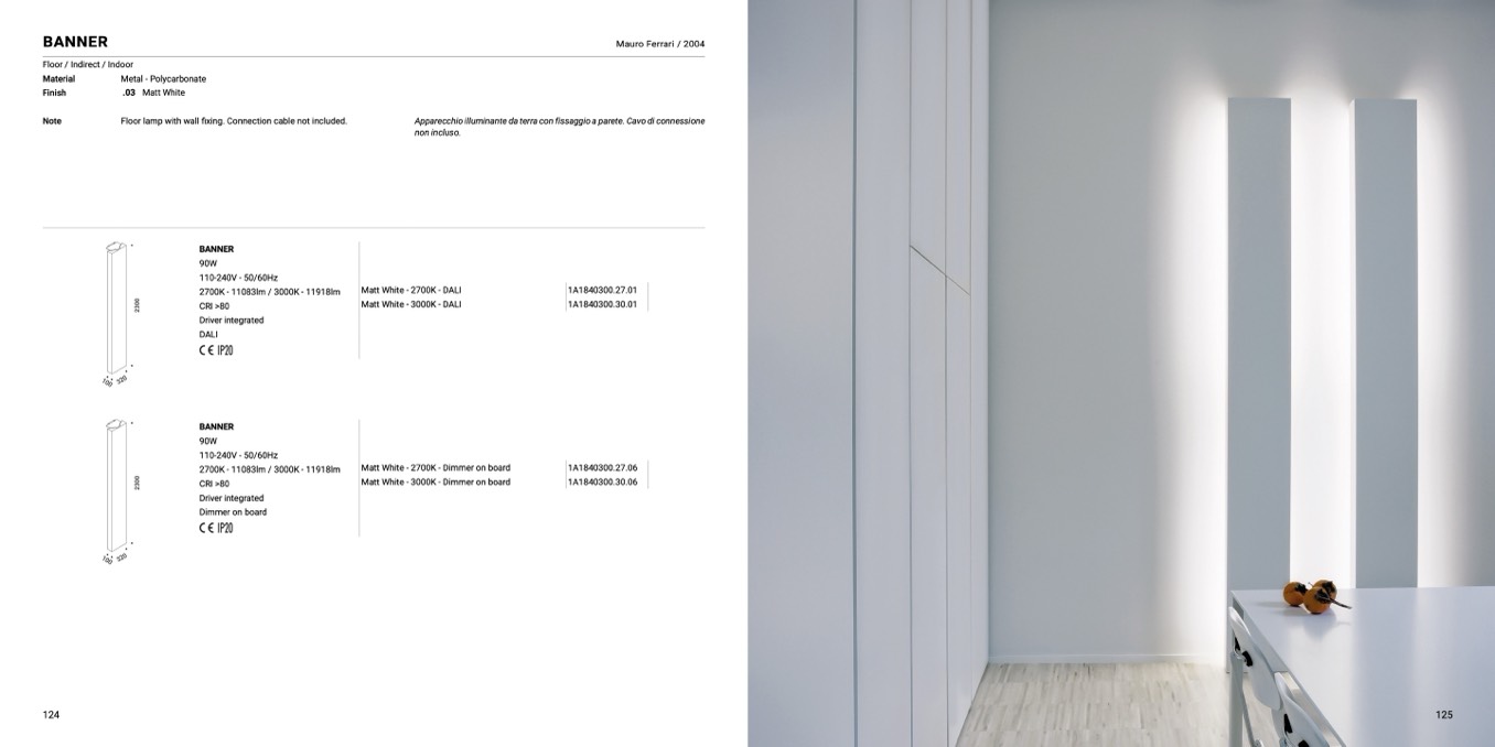Floor lamp with wall fixing. Connection cable not included.